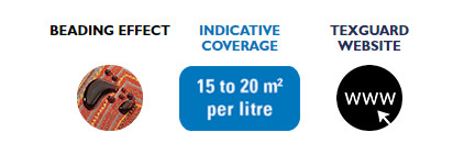 TexGuard® Heavy Duty penetrates the fibre deeply to the weft, and can therefore waterproof and protect all fabrics, carpets and rugs against penetration by water, oil and stains of all kinds (fruit, wine, fizzy drinks, coffee, tea, ice, etc.).