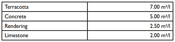 Coverage depends on the porosity of the material. The figures below should be used only as a general guideline